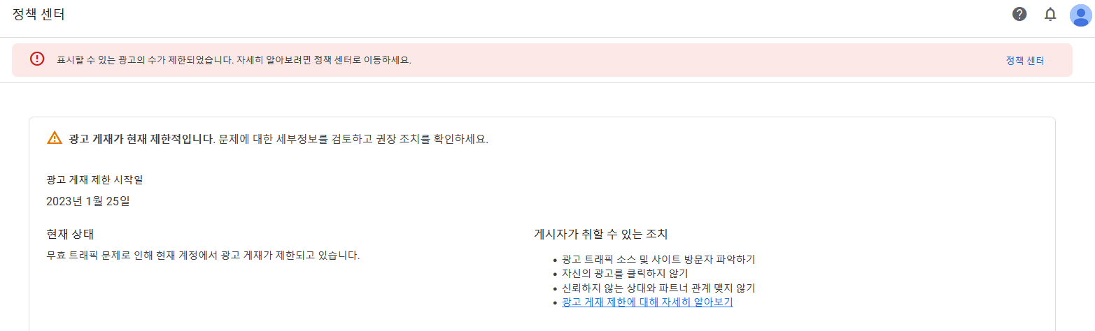 | 구글애드센스 표시할 수 있는 광고의 수가 제한되었습니다. 왜? 도대체 왜? 누가 이유 좀.. (0) | 2023.01.26 |