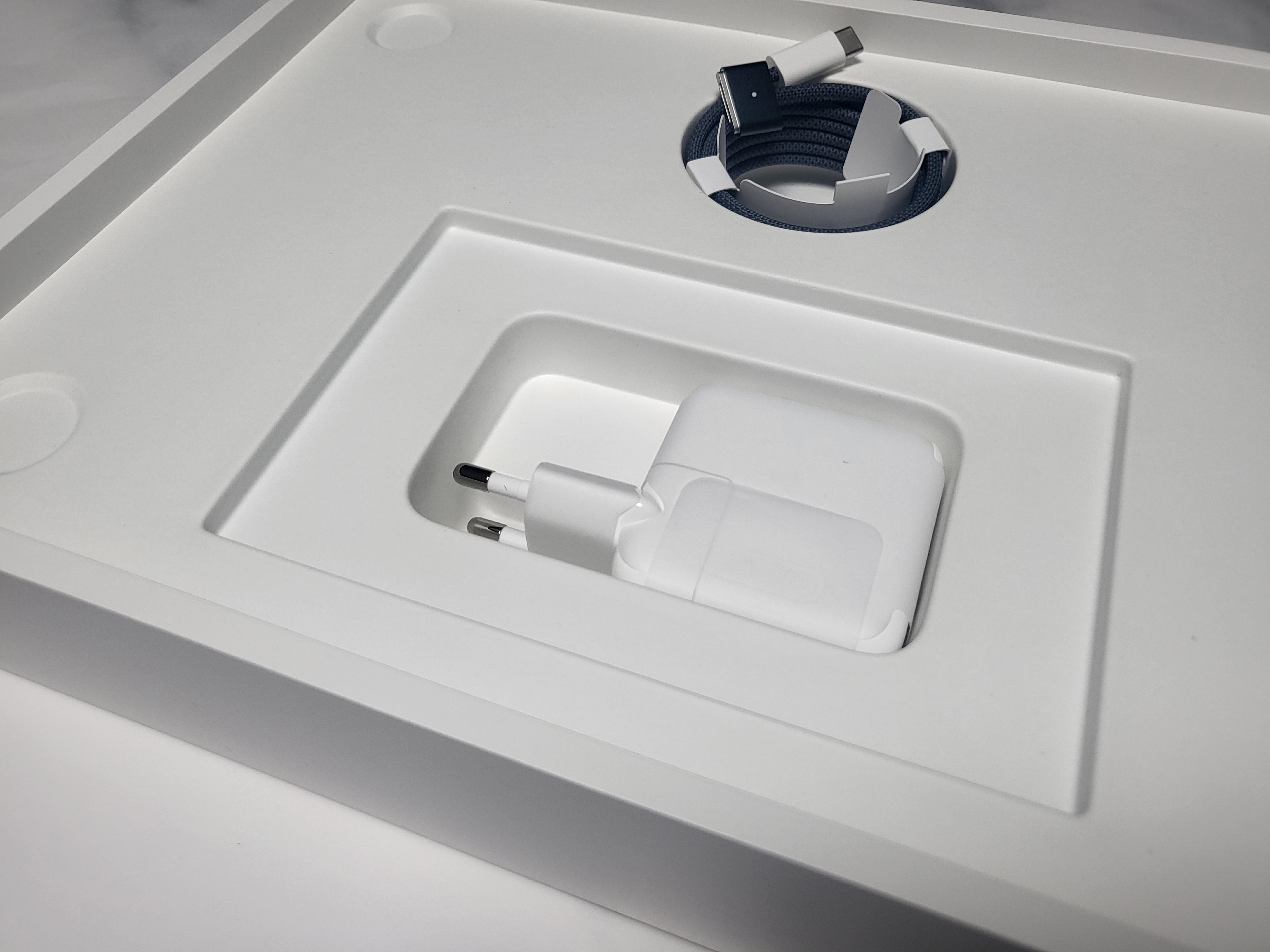 깔끔합니다. 흰박스에 딱 맞게 들어가 있는 맥북 자태가 곱습니다. 그리고 생각보다 묵직했으며, 1.24kg로 슬림하지만 제가 느끼기에는 무거웠습니다.