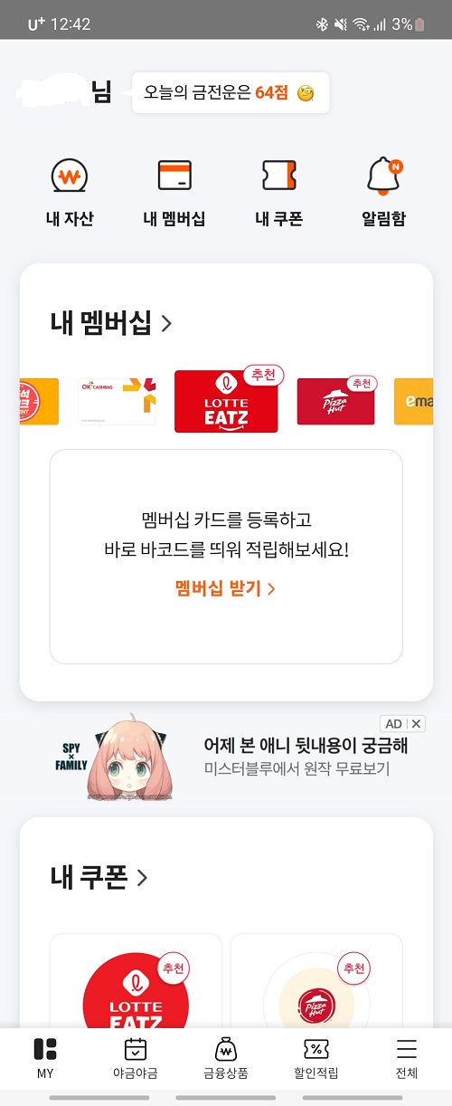 시럽이라는 어플은 오케이캐시백을 한다면 본 어플도 꼭 해야 하는 필수 어플인데요. 야금야금을 통해 랜덤으로 e금이 당첨되기도 합니다. 저는 많게는 e금 3개까지 당첨되었는데 0.0 몇 그람으로 알고 있습니다. 그럼에도 소소하게 나쁘지 않은 것 같습니다. 매일 야금야금 외에도 광고를 시청하게 되면 주어지는 포인트가 있습니다. 연속 7일 하게 되면 스타벅스 당첨의 기회도 주어지며 한 달 만근 시 순금 한 돈 당첨에도 응모가 됩니다. 워낙 많은 사람들이 하고 있기에 당첨확률은 낮을 수 있으나 밑져야 본전! 큰 기대 없이 해봅니다. 저는 만근 한 적이 없어 응모해본 적이 없습니다. 스타벅스 몇 번 했지만 아직 당첨운이 없었네요. 여러분들에게는 당첨의 행운이 있길 바랍니다.