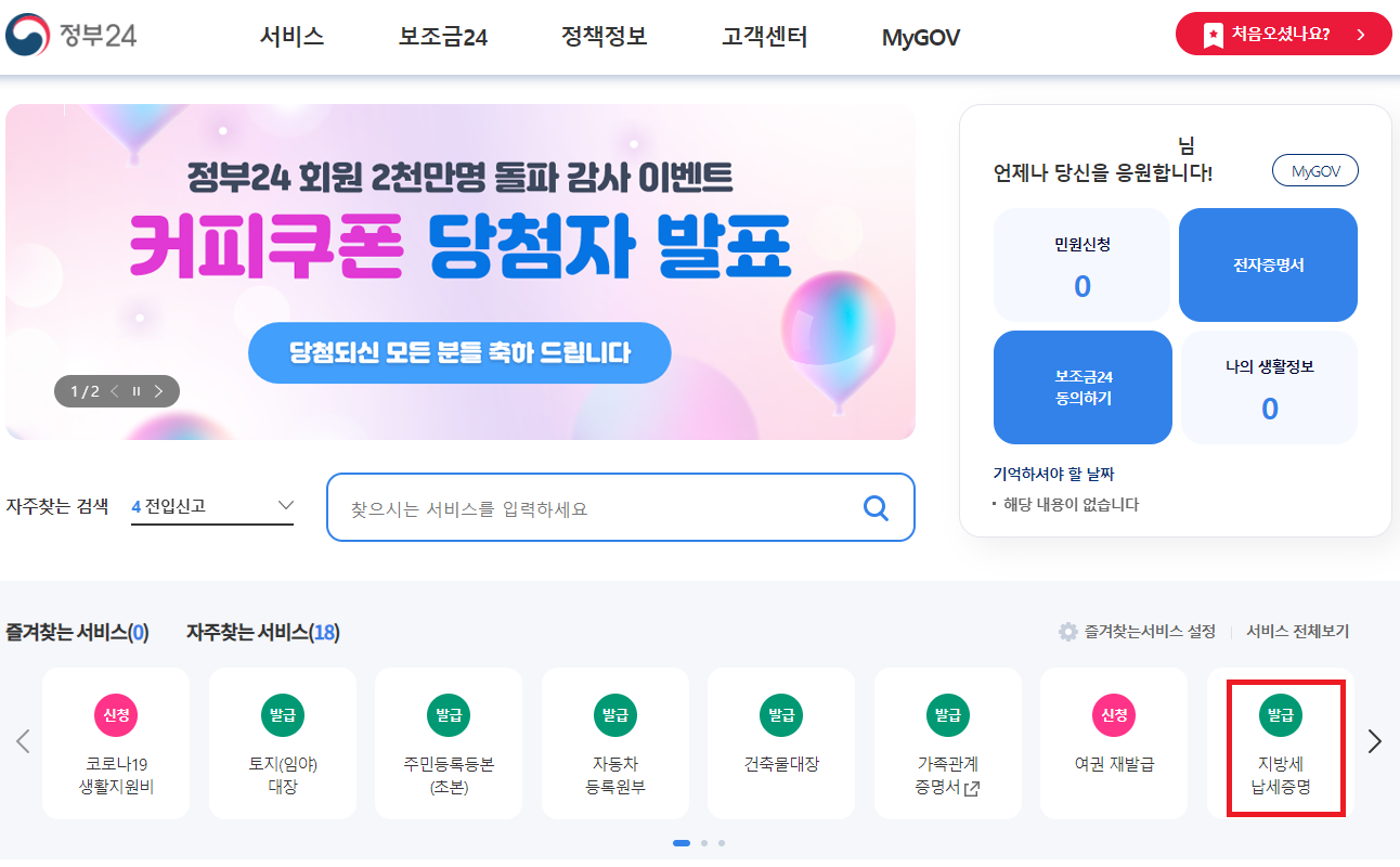 국세완납증명서는 홈택스 통해 발급받았다면, 지방세완납증명서는 정부24 통해 발급이 가능합니다. 정말 쉽기 때문에 한번 익히면 두 번 세 번 발급은 아무것도 아니게 됩니다. 그러니 천천히 따라오세요.