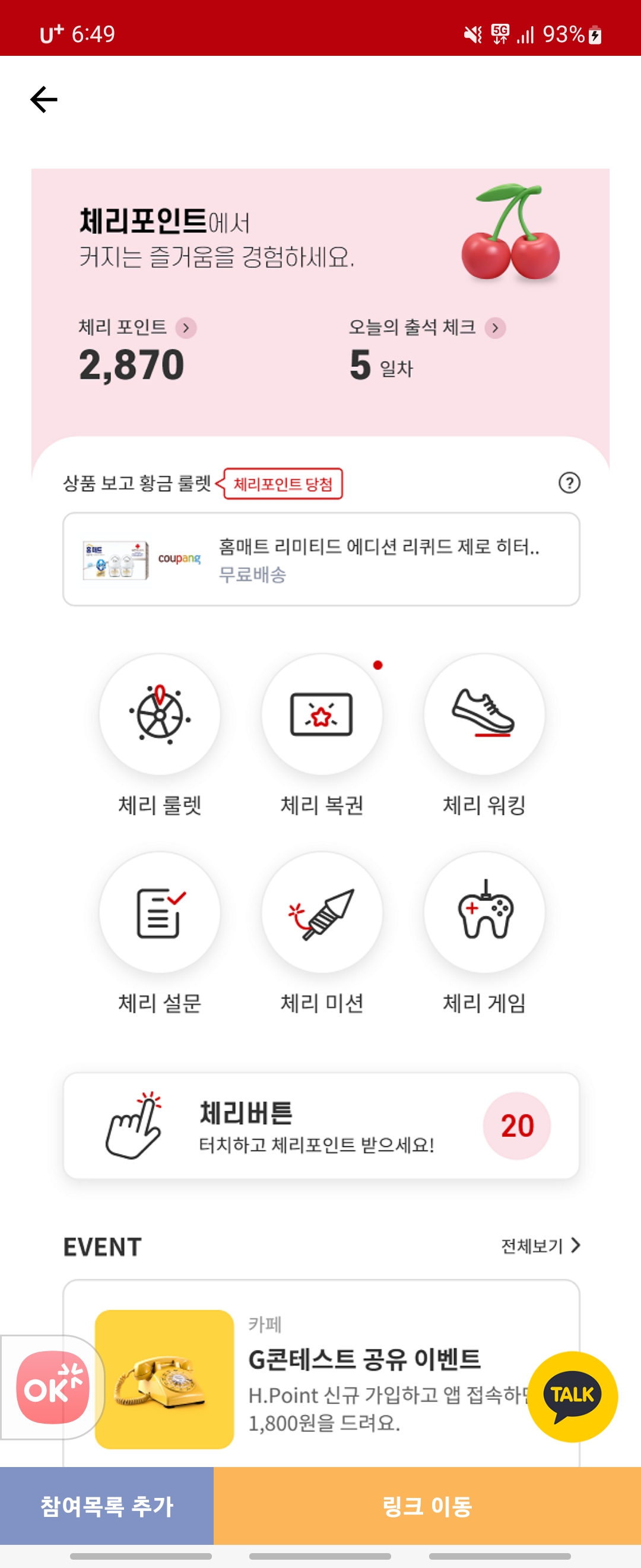체리콕 경품 이벤트 정보 앱테크, 짠테크 추천(현재는 어플 리뉴얼 중)